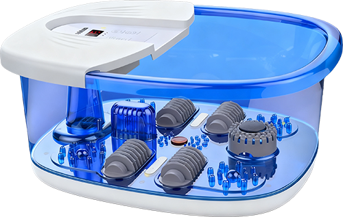 A massasjeapparat for fotspabad er en enhet for hjemmebruk som kombinerer nedsenking i varmt vann, massasjeruller, vibrasjo...